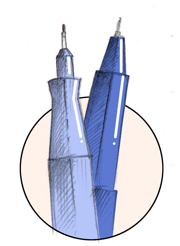 Rapidógrafo. Los rapidografos de uso más frecuente son descartables, aunque existen los estilógrafos que pueden recargarse con tinta china. Existen gran variedad de grosores, desde 0.05 mm hasta 0.8 mm permitiendo mezclar delgados, medianos y huesos. Es muy frecuente utilizarlos en negro así como de color. Se pueden encontrar resistentes al agua para combinar con técnicas de color.